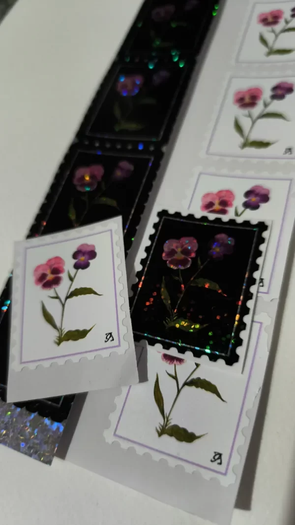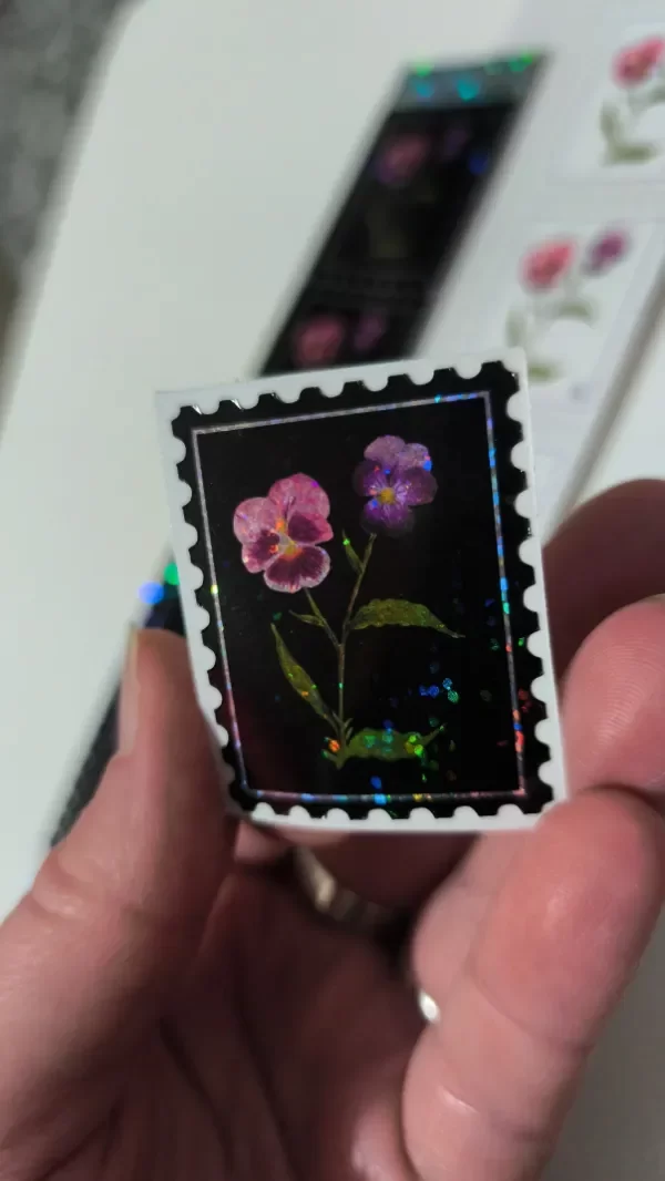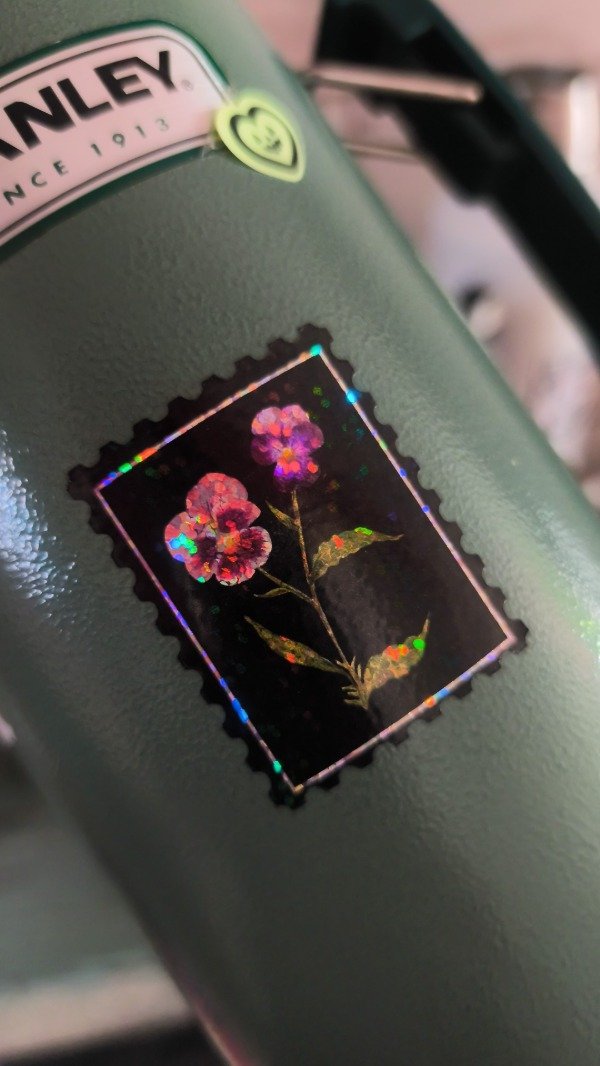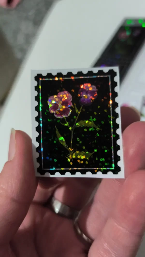 1 sticker estampilla resistente a la humedad con fondo negro holográfico